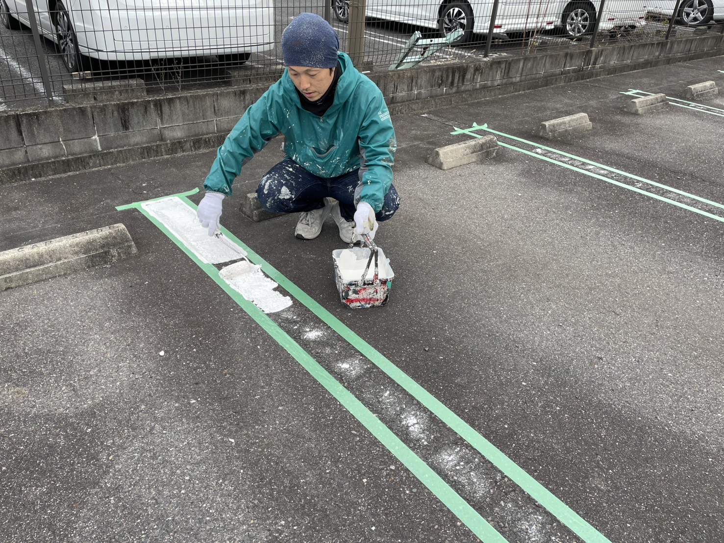 駐車場ラインに使用する塗料は、通常の建築用塗料とは異なり、耐久性と耐摩耗性に優れています。